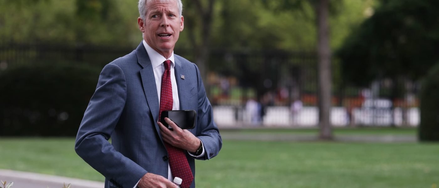 U.S. Energy Secretary Chris Wright departs after speaking during a television interview outside of the White House on August 19, 2025 in Washington, DC.