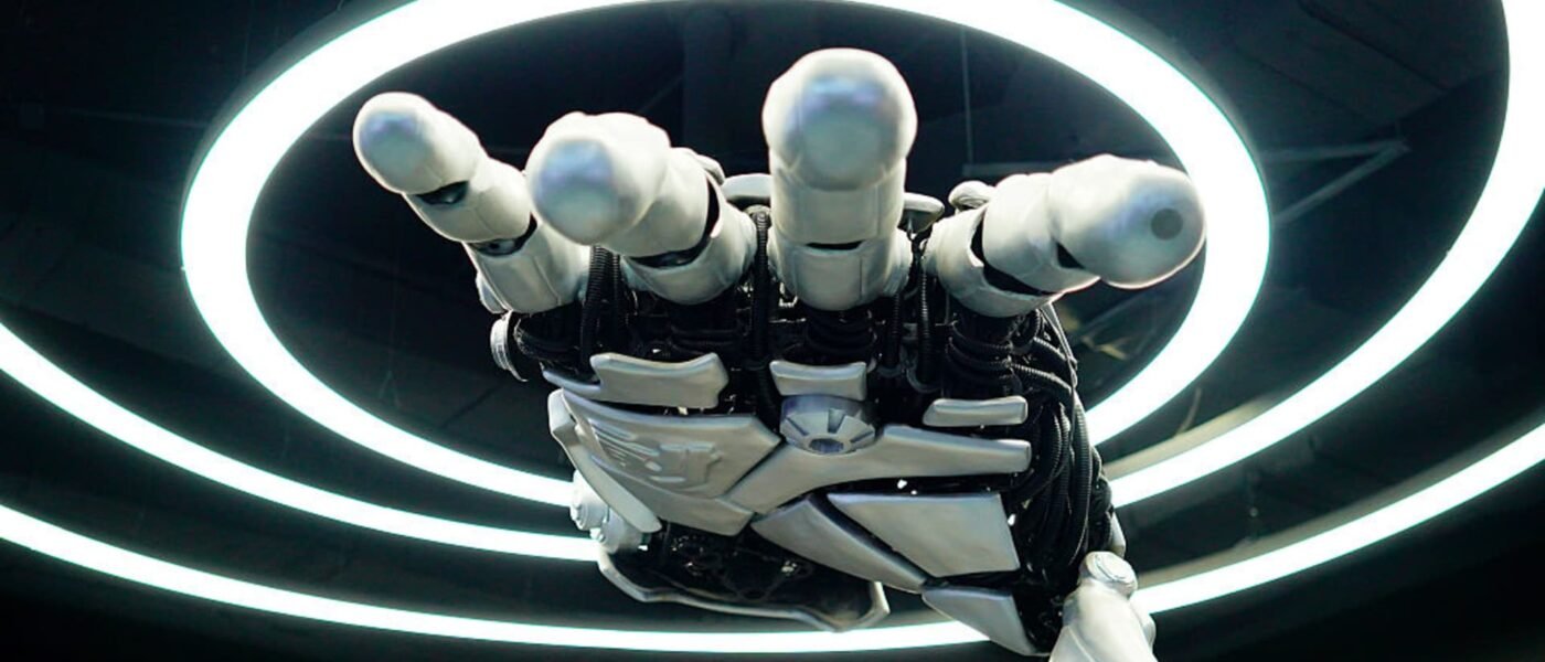 A mechanical hand is on display at the Robot Mall, world’s first embodied intelligent robot 4S store, on August 13, 2025 in Beijing, China.