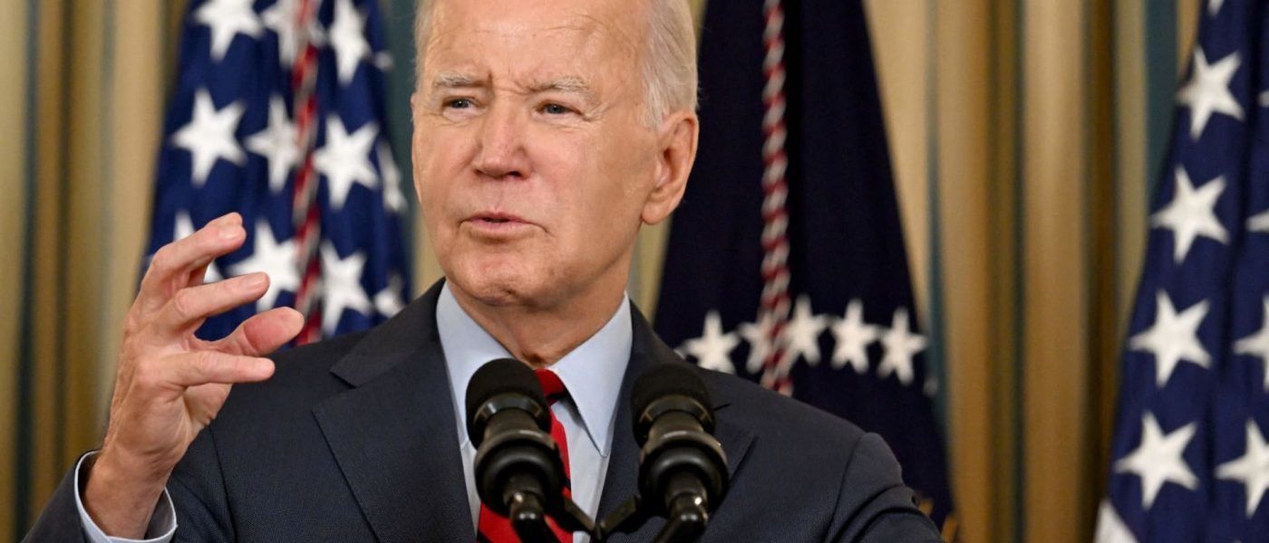 US President Joe Biden speaks about strengthening US ports and supply chains after the International Longshore and Warehouse Union and the Pacific Maritime Association finalized a new contract covering west coast ports, in the State Dining Room of the White House in Washington, DC, on September 6, 2023.