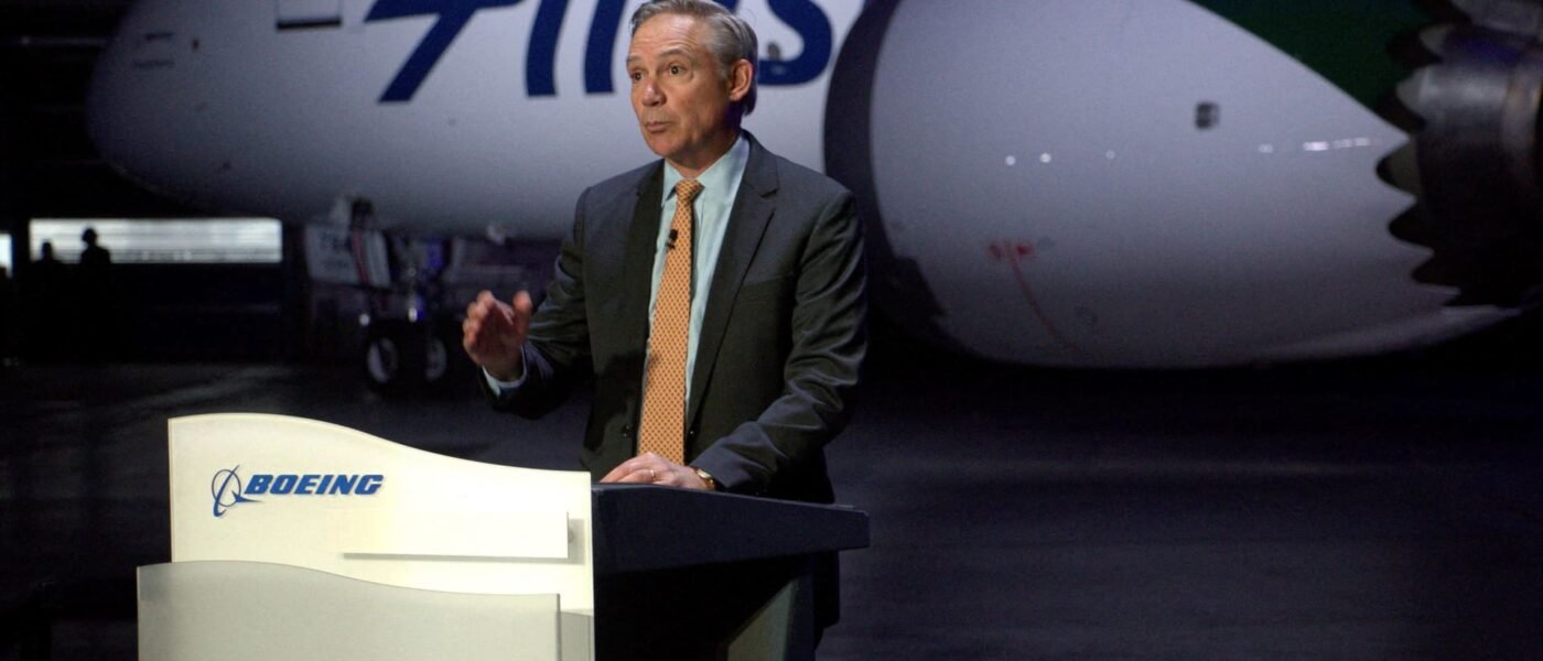 Boeing CEO Kelly Ortberg speaks at Boeing Field at an event announcing Alaska Airlines’ order for 105 737 MAX 10s and five 787-10 Dreamliner jets, in Seattle, Washington, U.S., January 7, 2026.
