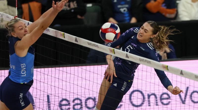 Read MoreLOVB Austin middle blocker Molly McCage (5) spikes the ball past LOVB Houston outside hitter Jess Mruzik (5) during the
