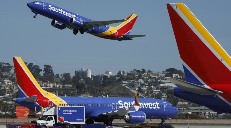 Read MoreA Southwest Airlines Boeing 737 MAX8 departs from San Diego International Airport to Chicago on March 4, 2025 in San