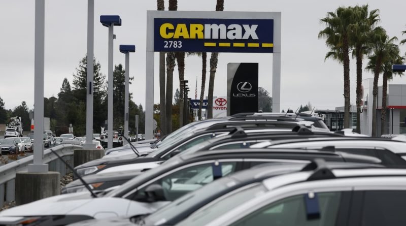 Read MoreA sign is posted in front of a CarMax dealership on April 10, 2025 in Santa Rosa, California. Justin Sullivan