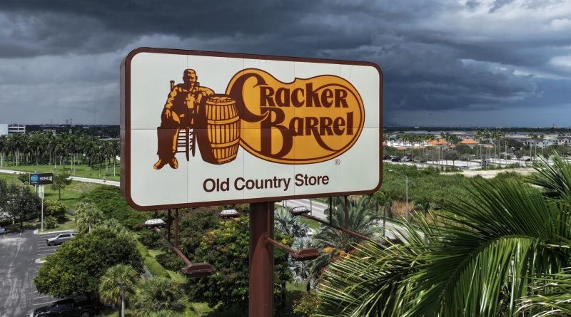 Read MoreIn an aerial view, a Cracker Barrel sign hangs on a sign outside of a restaurant in Florida City, Florida,