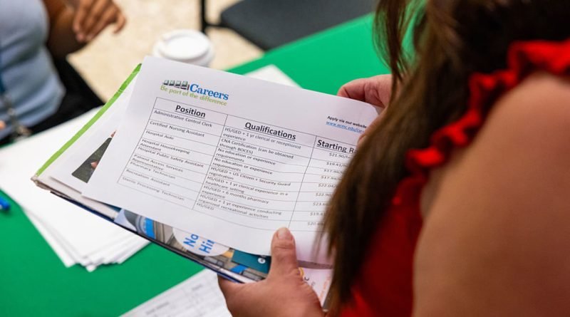 Read MoreA jobseeker holds a brochure during a NYS Department Of Labor job fair at the Downtown Central Library in Buffalo,