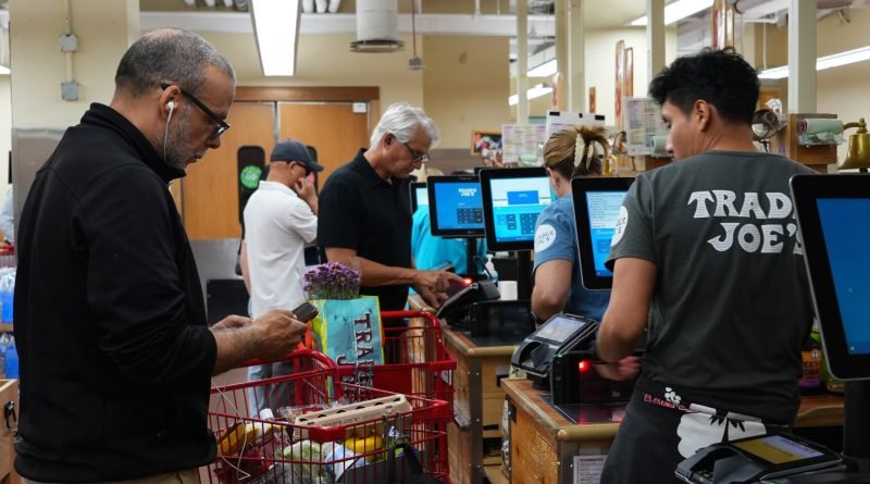 Read MoreCustomers check out at a supermarket on August 12, 2025 in New York City. Liao Pan | China News Service
