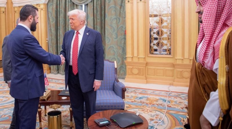Read MoreU.S. President Donald Trump meets with Syrian President Ahmed al-Sharaa in Riyadh, Saudi Arabia, in this handout released on May
