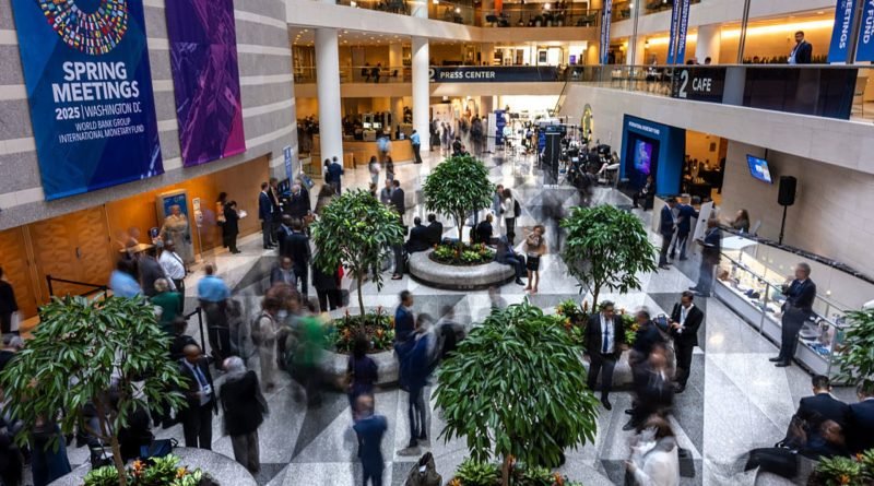 Read MoreGuests and attendeess mingle and walk through the atrium during the IMF/World Bank Group Spring Meetings at the IMF headquarters
