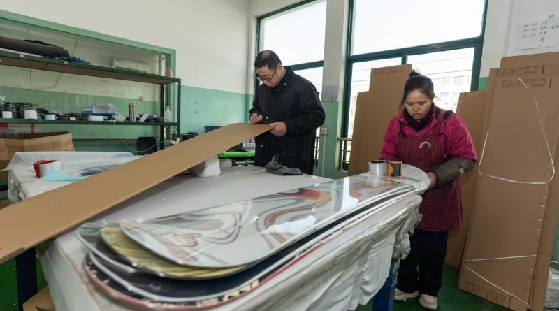 Read MoreNINGBO, CHINA – JANUARY 22: Employees work on the production line of snowboards at a workshop to meet the orders
