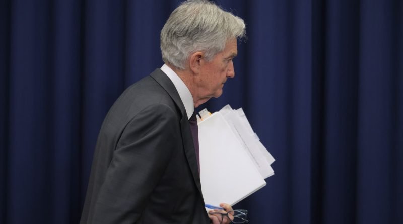 Read MoreFederal Reserve Chairman Jerome Powell talks to reporters following the regular Federal Open Market Committee meetings at the Fed on