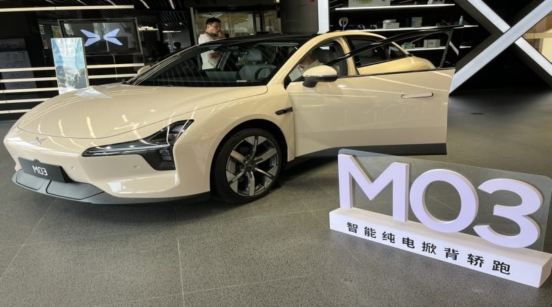 Read MoreChinese electric car company Xpeng displays its mass-market Mona M03 coupe inside a headquarters’ showroom in Guangzhou, China, on Aug.