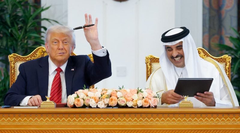 Read MoreU.S. President Donald Trump and Qatar’s Emir Tamim bin Hamad Al Thani meet in Doha, Qatar, on May 14, 2025.