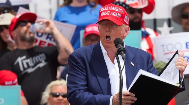 Read MoreRepublican presidential candidate and former U.S. President Donald Trump speaks during a campaign event, in Las Vegas, Nevada, U.S. June