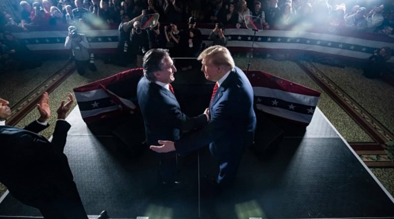 Read MoreRepublican presidential candidate and former President Donald Trump shakes hands with North Dakota Gov. Doug Burgum as Vivek Ramaswamy, left,