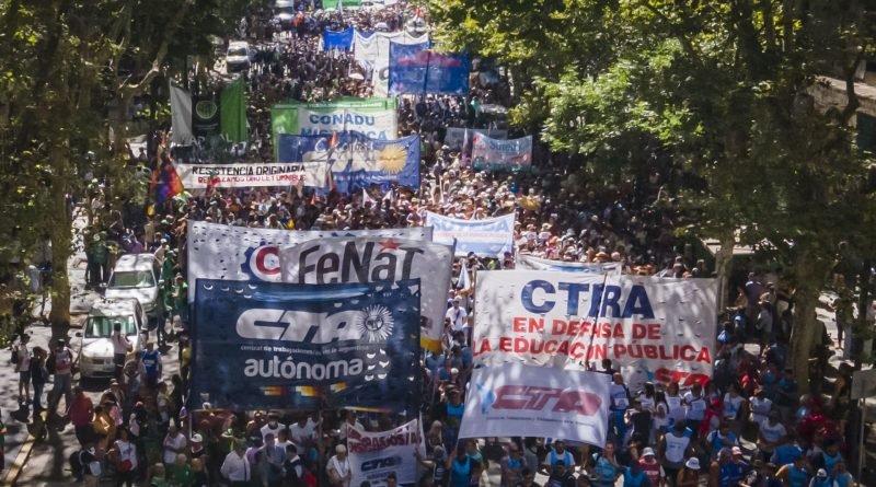 Read MoreProtesters march during a national strike against policies of President Javier Milei called by worker’s union CGT on January 24,