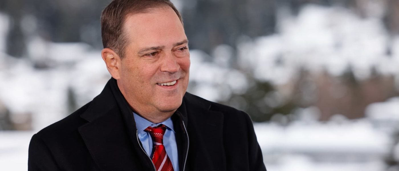Chuck Robbins, chief executive officer of Cisco, participates in a Bloomberg interview at the World Economic Forum in Davos, Switzerland, on Jan. 17, 2024.