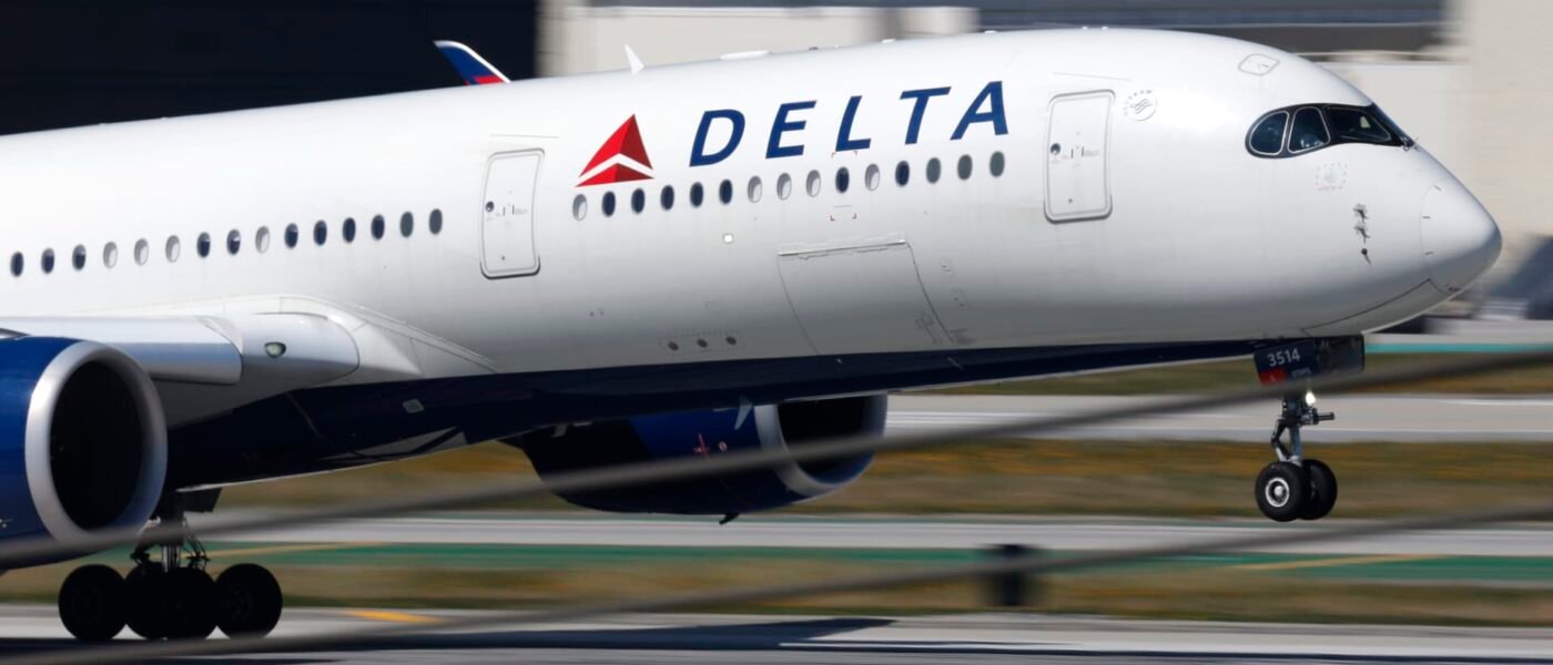 A Delta Air Lines Airbus A350 airplane lands at Los Angeles International Airport after arriving from Atlanta on March 7, 2026 in Los Angeles, California.