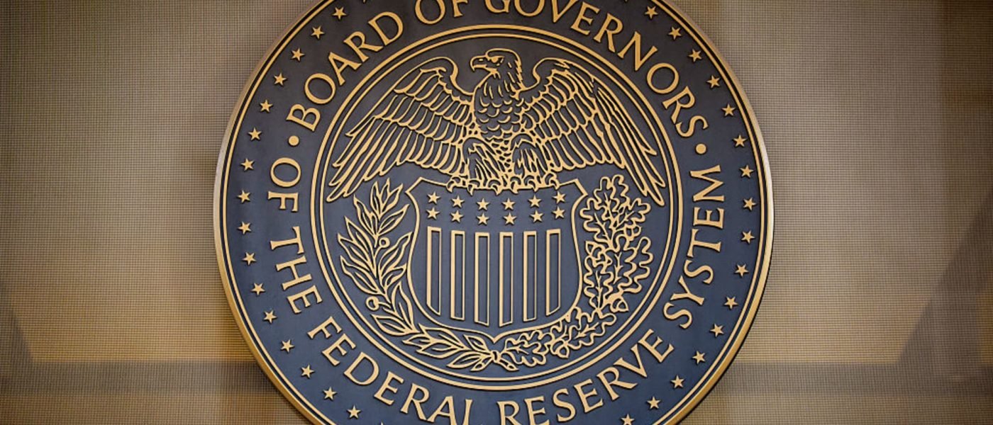 The Federal Reserve logo is visible on the William McChesney Martin Jr. Building on December 9, 2025 in Washington, DC.