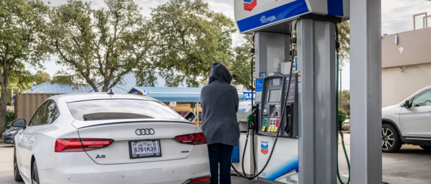A customer pumps gas at a Chevron gas station on February 13, 2025 in Austin, Texas.