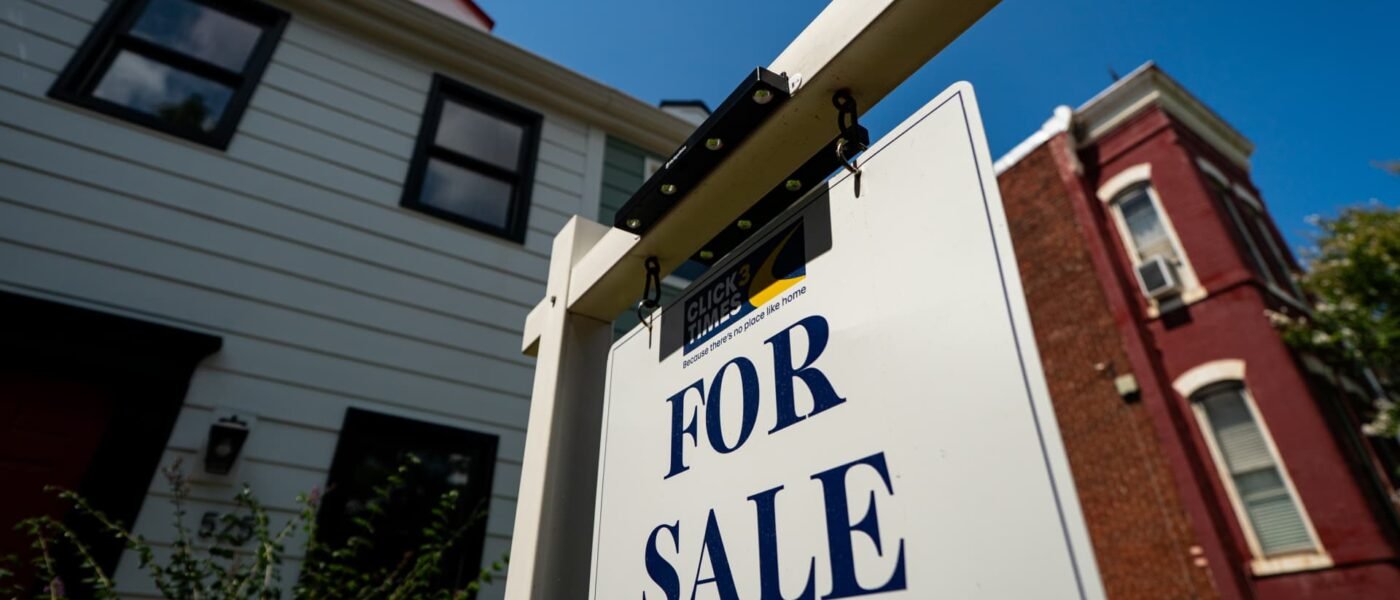 A “For Sale” sign outside a house in the Capitol Hill neighborhood of Washington, DC, US, on Tuesday, Aug. 12, 2025.