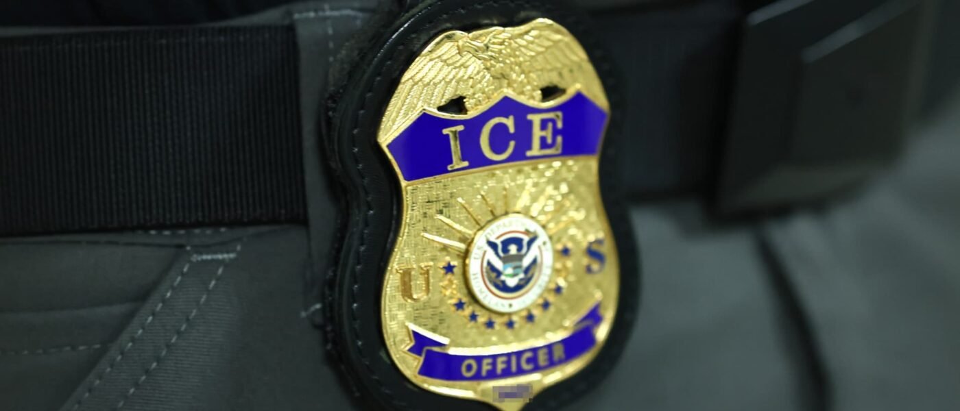 The badge of an Immigration and Customs Enforcement (ICE) agent.