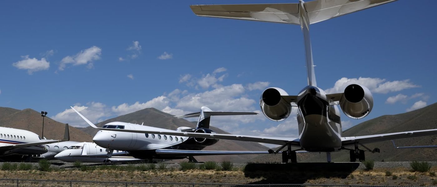 Private jets parked at the Friedman Memorial Airport during the Allen & Company Sun Valley Conference on July 10, 2025 in Sun Valley, Idaho.