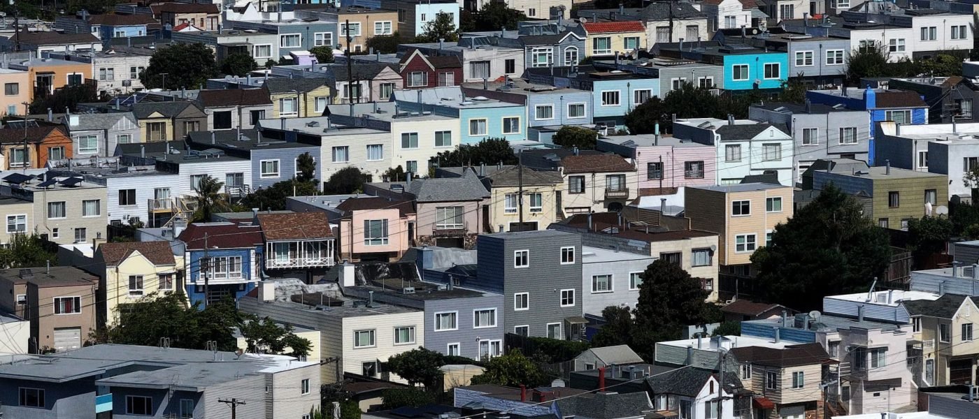 An aerial view of homes in a neighborhood on Aug.27, 2025 in San Francisco, California.
