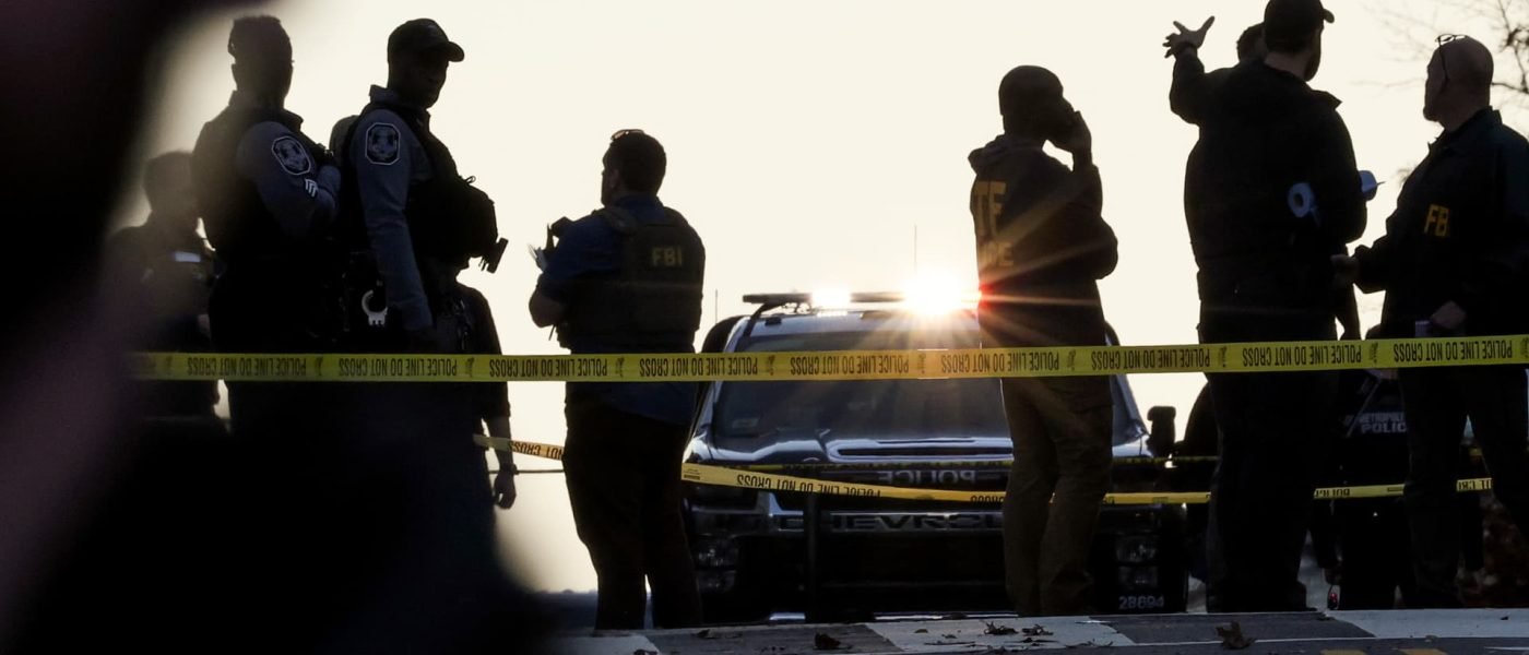 Members of law enforcement, including the U.S. Secret Service and the Washington Metropolitan Police Department, respond to a shooting near the White House on Nov. 26, 2025 in Washington, DC.
