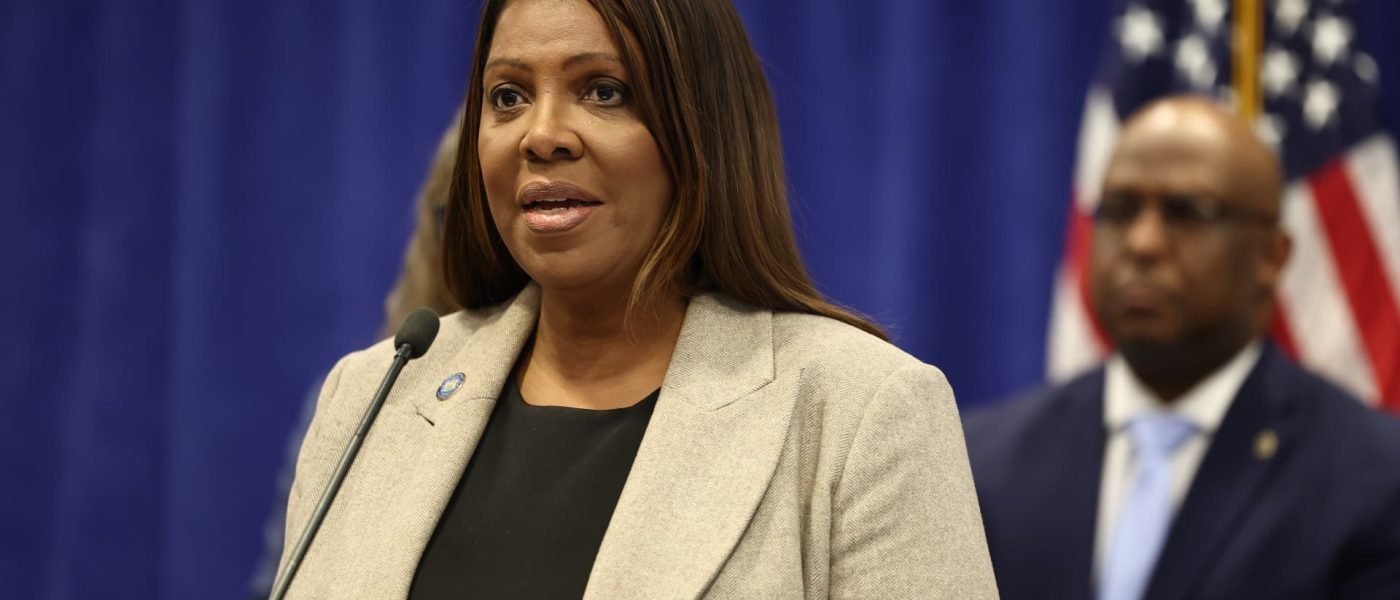 NY Attorney General Letitia James speaks during a press conference at the offices of the Attorney General on January 08, 2025 in New York City.