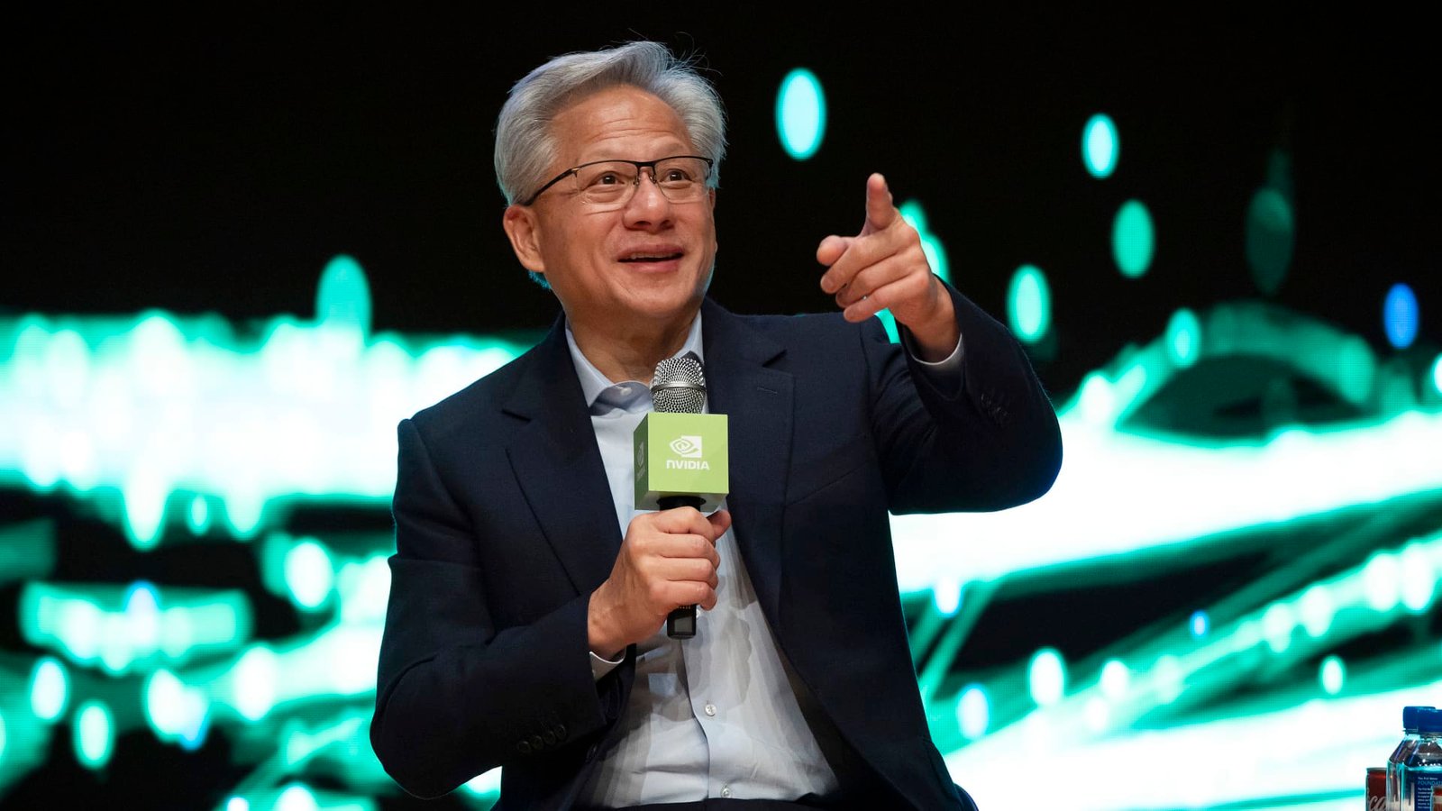 Jensen Huang, NVIDIA founder and CEO, has a Q&A session at a press conference during the APEC CEO summit on October 31, 2025 in Gyeongju, South Korea.
