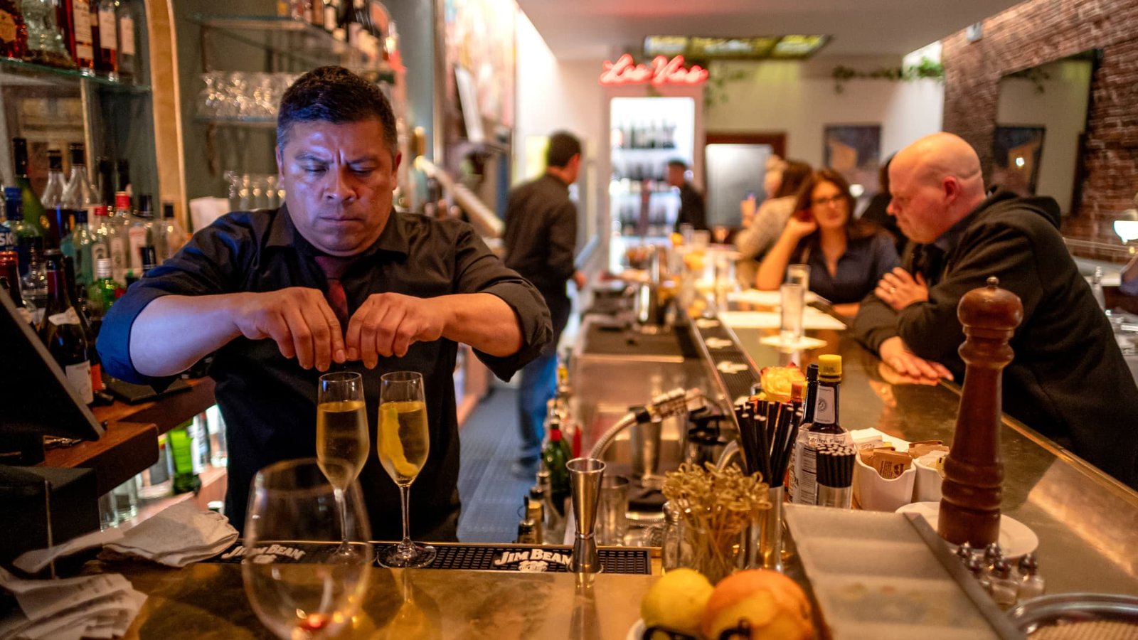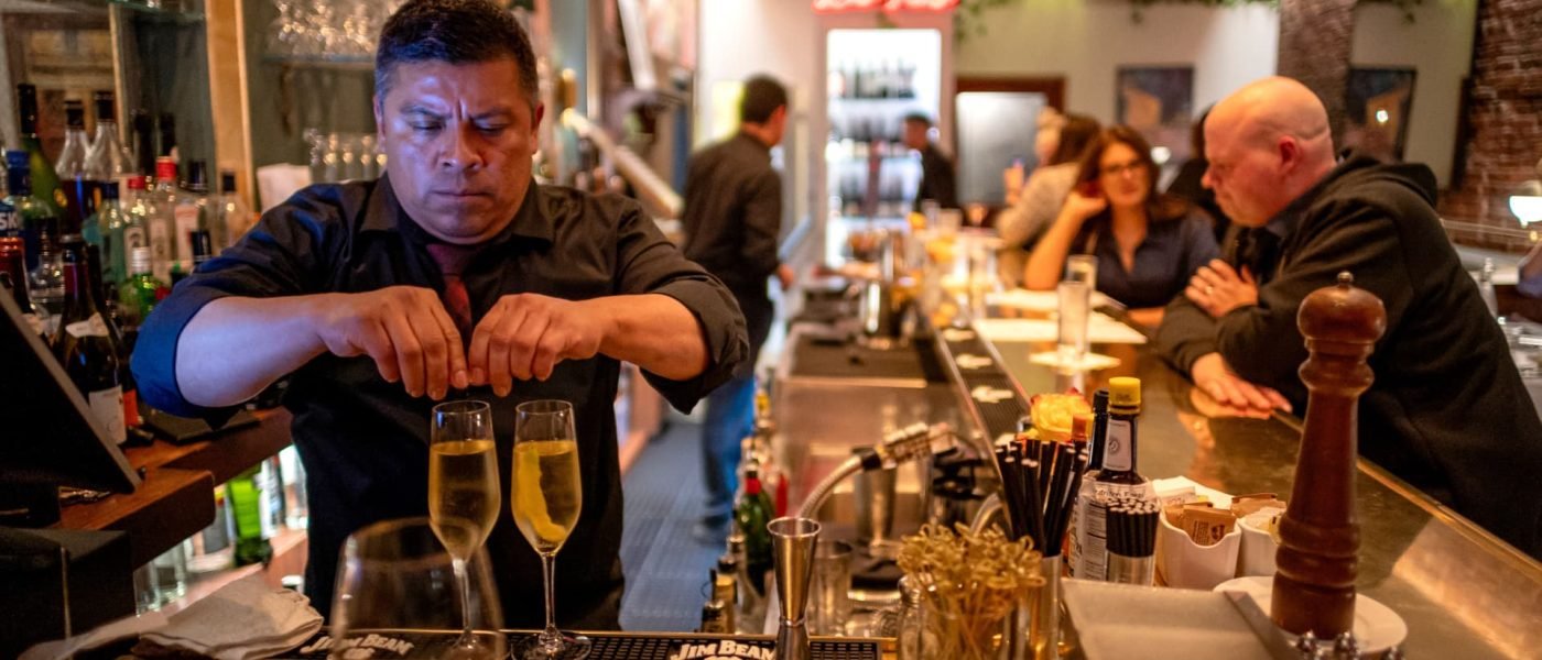 A bartender prepares drinks in Le Central restaurant in San Francisco, California, US, on Tuesday, May 7, 2024.
