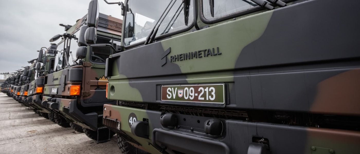 German Rheinmetall MAN tactical military transport vehicles parked in the Edvard Peperko military barracks.