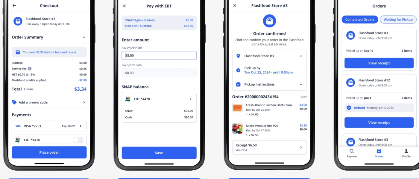 Flashfood connects shoppers with local grocery stores to purchase food nearing its best-by date at a discount. Users browse, purchase and pay for items directly through the app, then pick up orders from a designated “Flashfood zone” fridge in store.