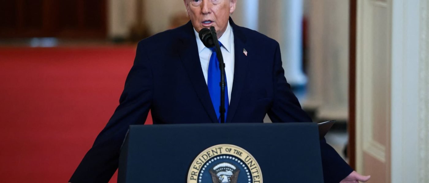 President Donald Trump speaks during an event to honor “Angel Families” who have lost family members to crimes committed by people in the country illegally, at the White House in Washington, Feb. 23, 2026.