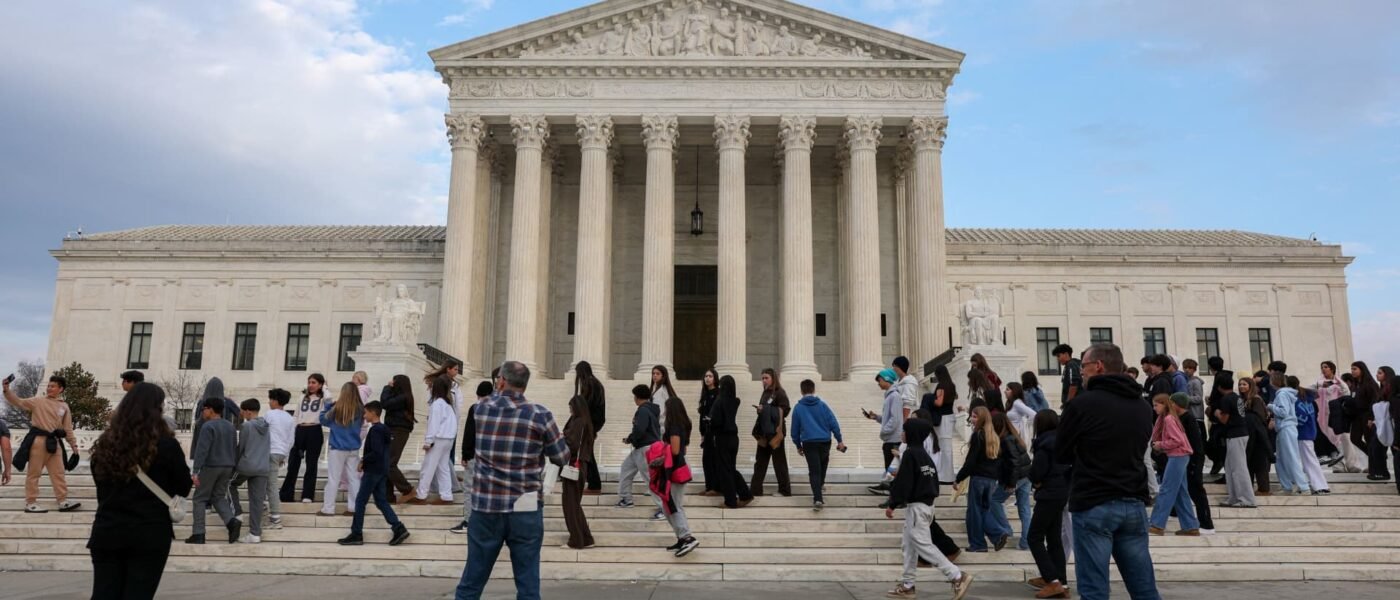People walk near the U.S. Supreme Court, where justices are expected to issue opinions in pending cases, in Washington, D.C., U.S., Feb. 25, 2026.