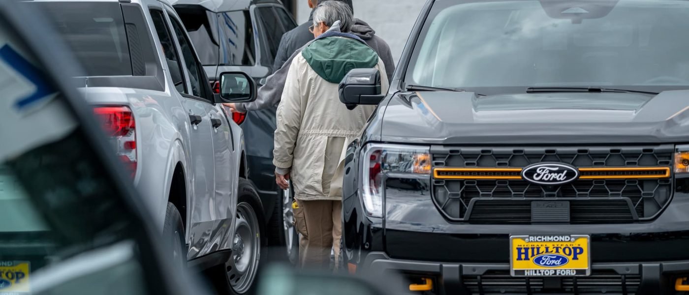 Customers at a Ford dealership in Richmond, California, April 16, 2025.