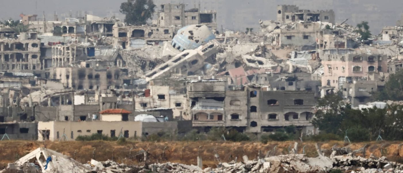 A general view of destruction in North Gaza, as seen from the Israeli side of the Israel-Gaza border, on May 17, 2025.