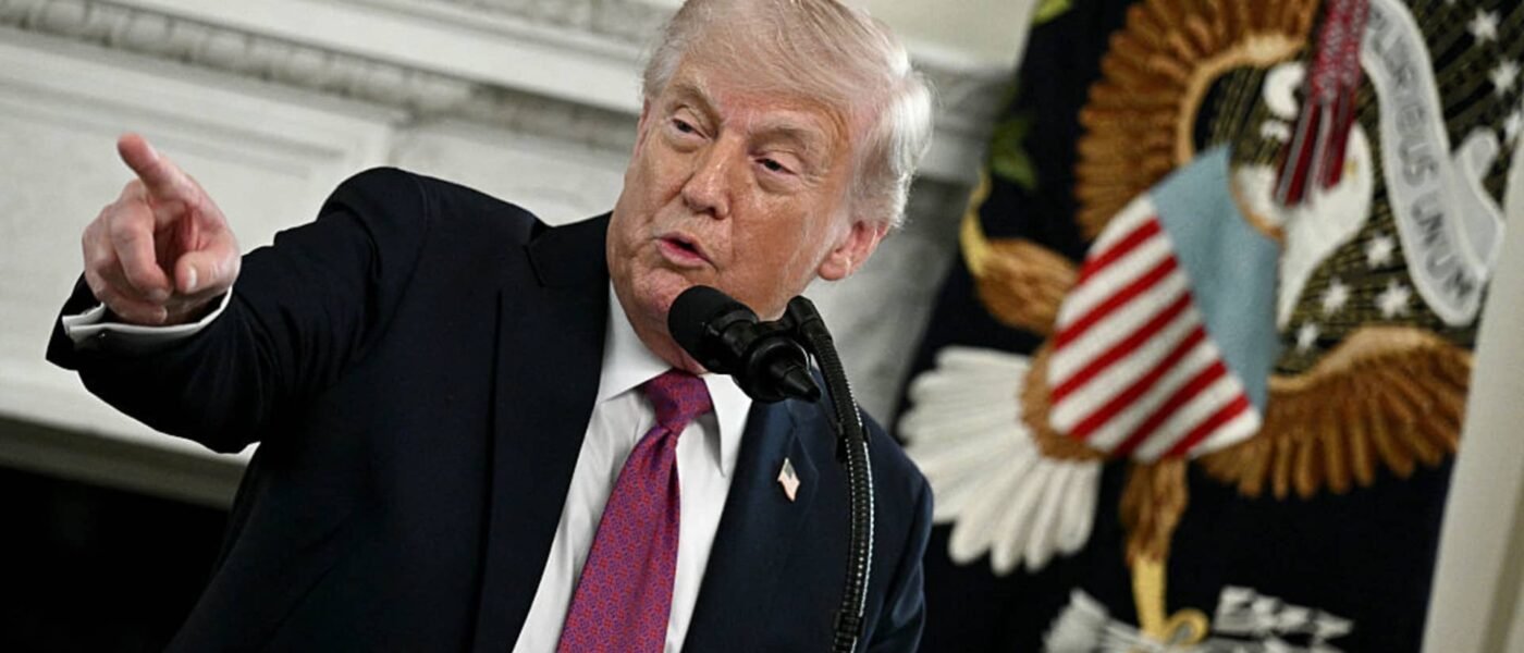 US President Donald Trump speaks during the NCAA Collegiate National Champions Day event at the White House in Washington, DC, on April 21, 2026.