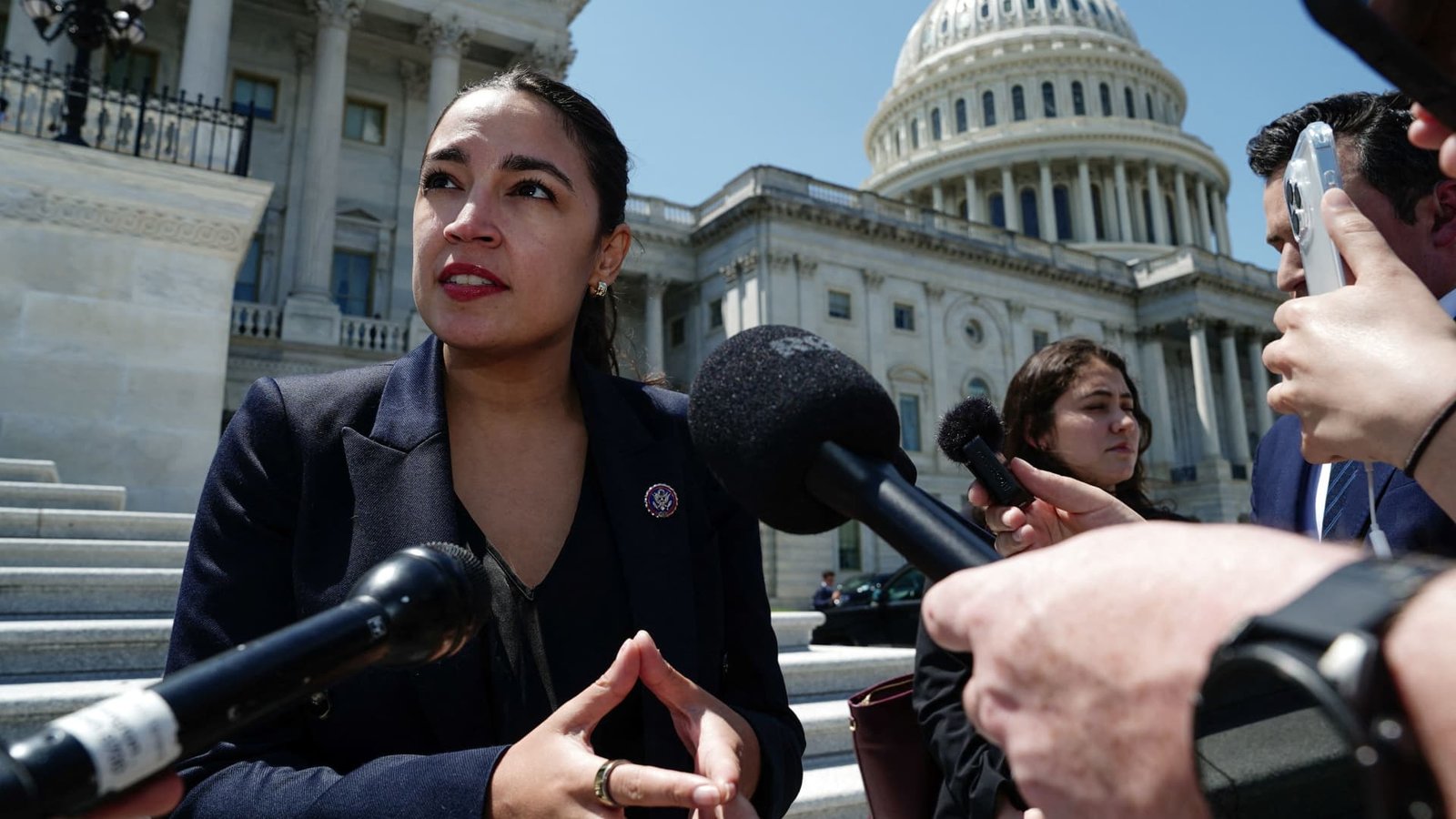 U.S. Rep. Alexandria Ocasio-Cortez, D-N.Y., speaks to the media outside the U.S. Capitol after the House of Representatives voted to pass President Donald Trump’s sweeping spending and tax bill, in Washington, July 3, 2025.