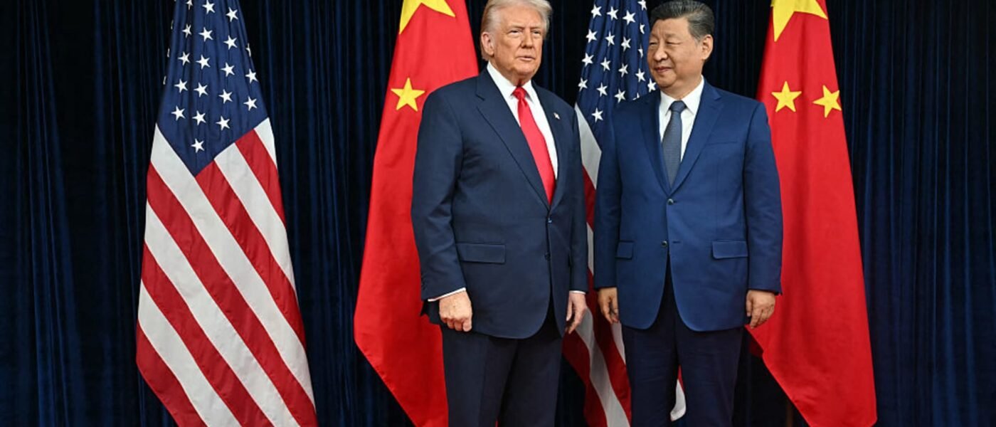 TOPSHOT – US President Donald Trump (L) and China’s President Xi Jinping arrive for talks at the Gimhae Air Base, located next to the Gimhae International Airport in Busan on October 30, 2025. Donald Trump and Chinese leader Xi Jinping will seek a truce in their bruising trade war on October 30, with the US president predicting a “great meeting” but Beijing being more circumspect. (Photo by ANDREW CABALLERO-REYNOLDS / AFP) (Photo by ANDREW CABALLERO-REYNOLDS/AFP via Getty Images)