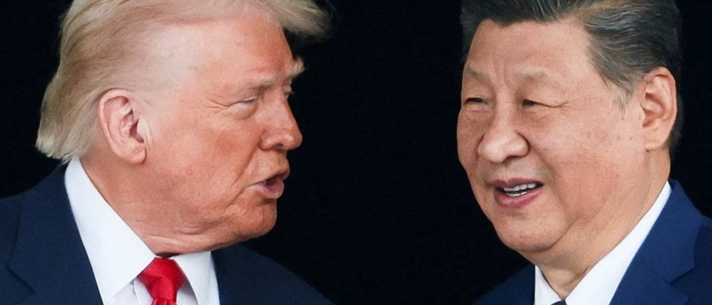 U.S. President Donald Trump and Chinese President Xi Jinping talk as they leave after a bilateral meeting at Gimhae International Airport, on the sidelines of the Asia-Pacific Economic Cooperation (APEC) summit, in Busan, South Korea, October 30, 2025.