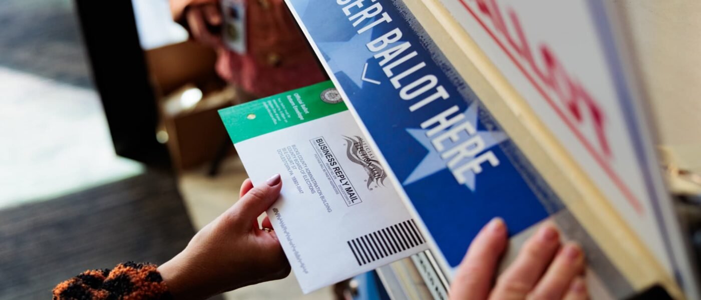 A person drops off a mail-in ballot on October 15, 2024 in Doylestown, Pennsylvania.