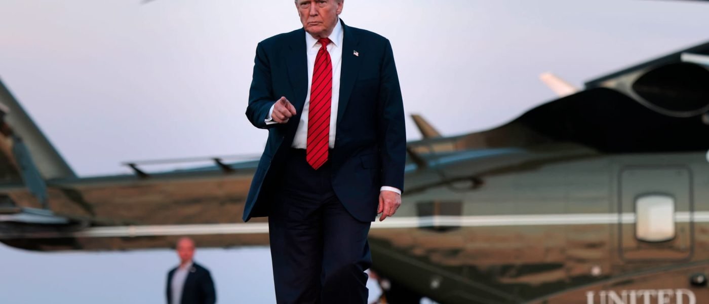 U.S. President Donald Trump walks towards reporters from Marine One at at the Lehigh Valley International Airport on August 03, 2025 in Allentown, Pennsylvania.