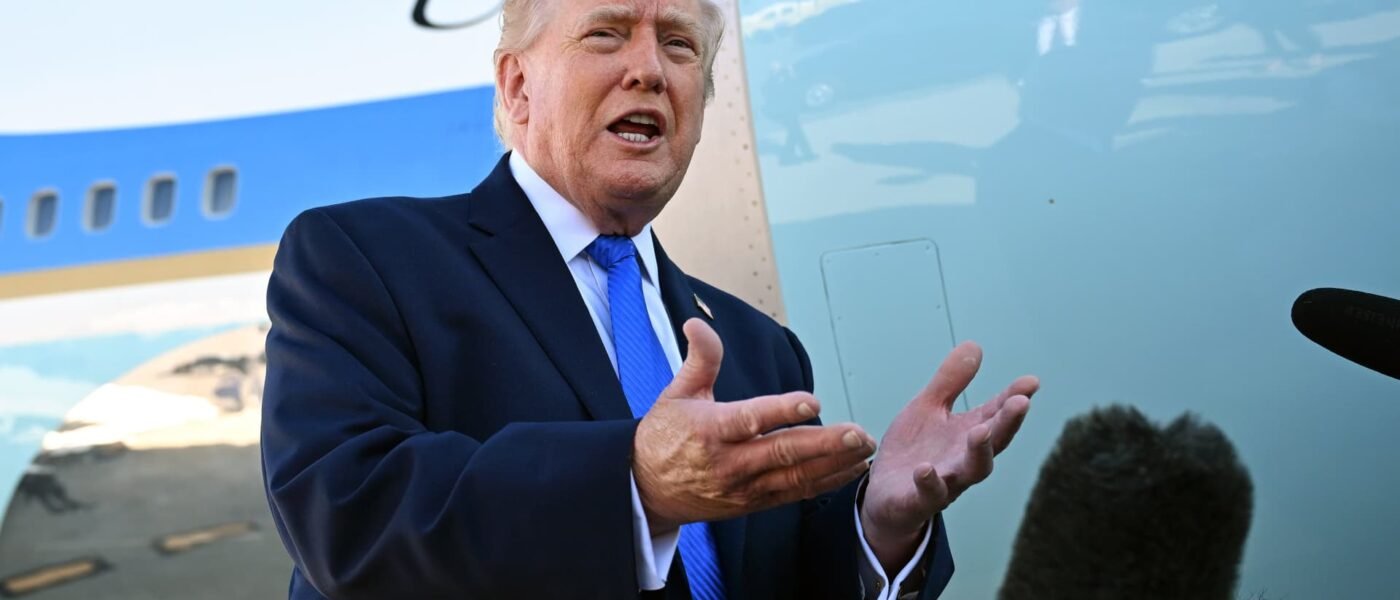 U.S. President Donald Trump speaks to reporters before boarding Air Force One at Palm Beach International Airport on March 23, 2026 in West Palm Beach, Florida.