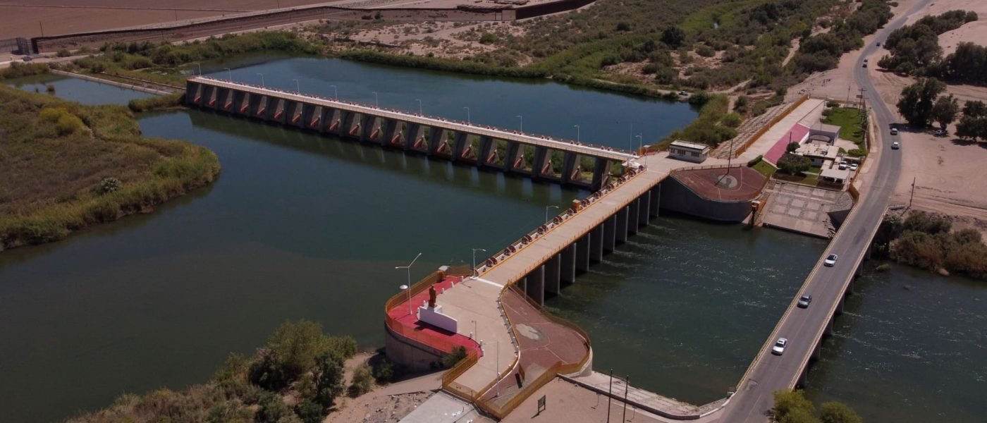 A drone view shows the Morelos Dam, which diverts Colorado River water to the Mexicali Valley, as the Mexican government announced an immediate water delivery to Texas farmers to help address a shortfall under a treaty that has strained U.S.-Mexico relations and prompted tariff threats by U.S. President Donald Trump, in Los Algodones, Mexico, April 10, 2025.