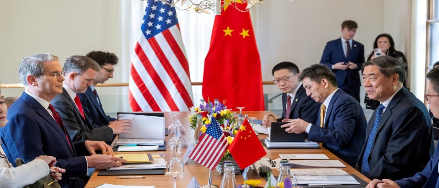 U.S. Secretary of the Treasury Scott Bessent, U.S. Trade Representative Jamieson Greer, China’s International Trade Representative and Vice Minister of Commerce Li Chenggang, and Chinese Vice Premier He Lifeng, prepare to discuss on the day of a bilateral meeting between the U.S. and China, in Geneva, Switzerland, on May 10, 2025.