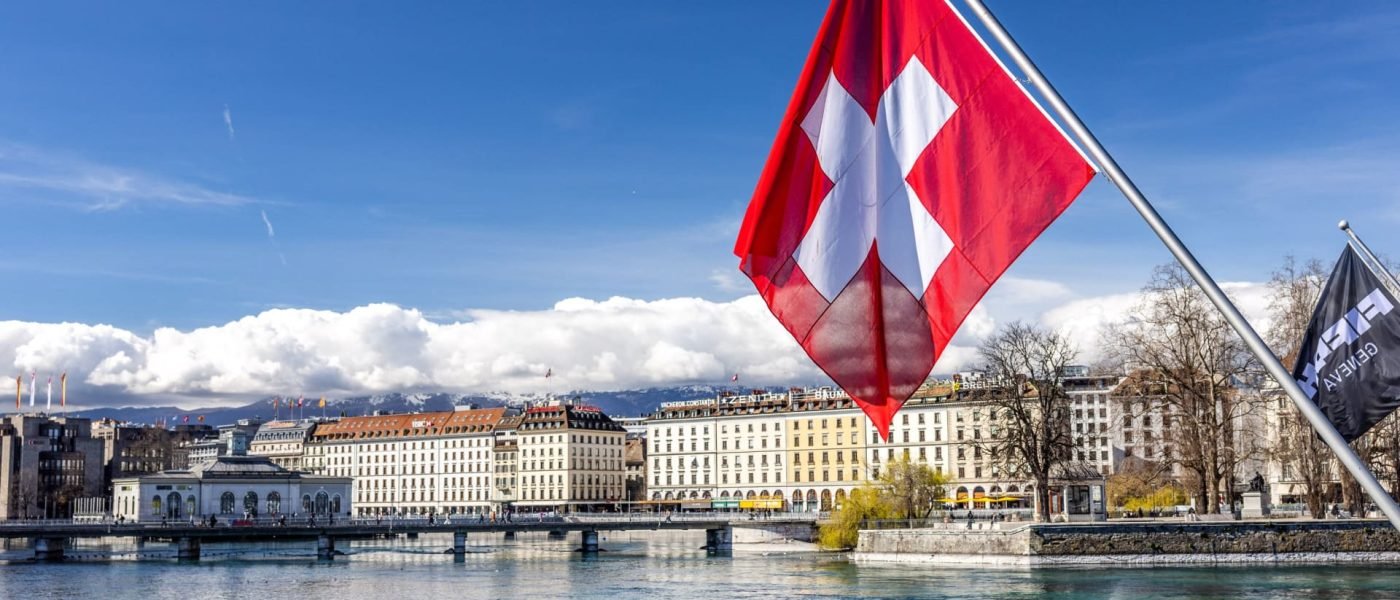 Swiss flag is pictured at the Harbor in Geneva, Switzerland, March 13, 2024.