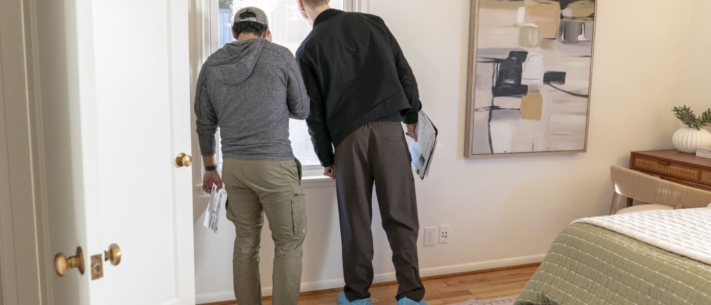 A prospective buyer and a real estate agent look through a window in a bedroom during an open house at a home in Seattle, Washington, US, on Sunday, Jan. 18, 2026.