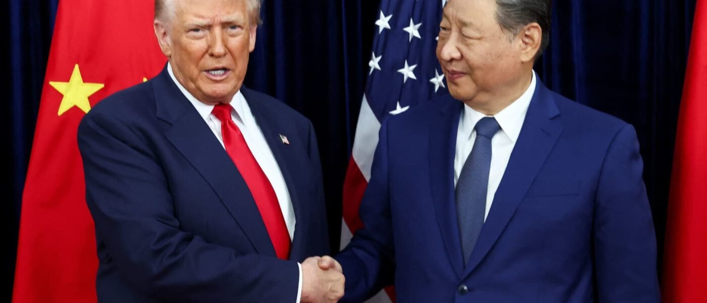 U.S. President Donald Trump shakes hands with Chinese President Xi Jinping as they hold a bilateral meeting at Gimhae International Airport, on the sidelines of the Asia-Pacific Economic Cooperation (APEC) summit, in Busan, South Korea, October 30, 2025.