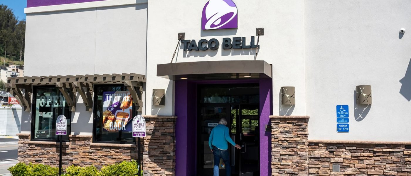 A customer enters a Taco Bell restaurant in El Cerrito, California, US, on Tuesday, April 29, 2025.
